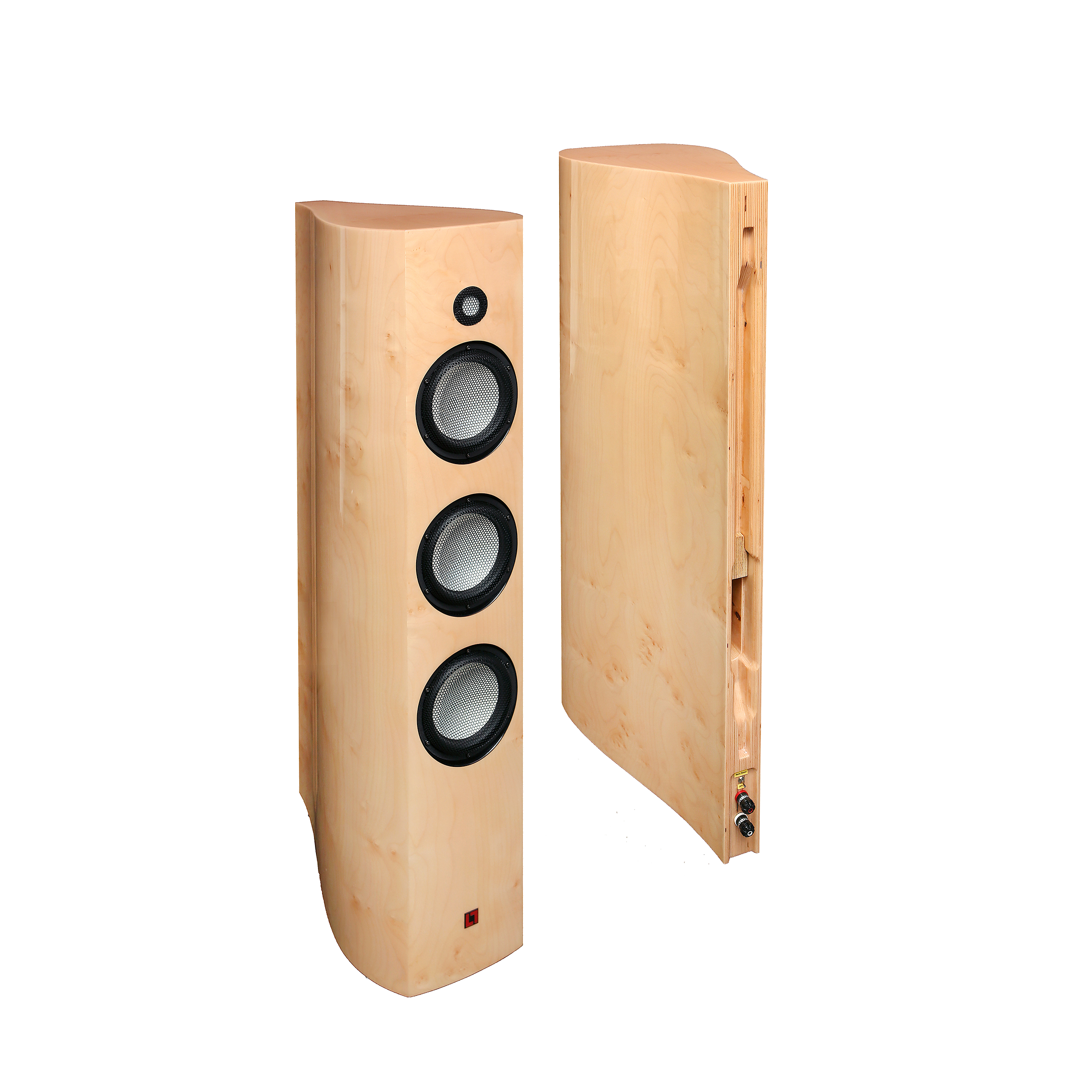 cabinet constructed from custom made, variable density, resonance balanced, multiple tonewoods based, instrument-grade plywood.